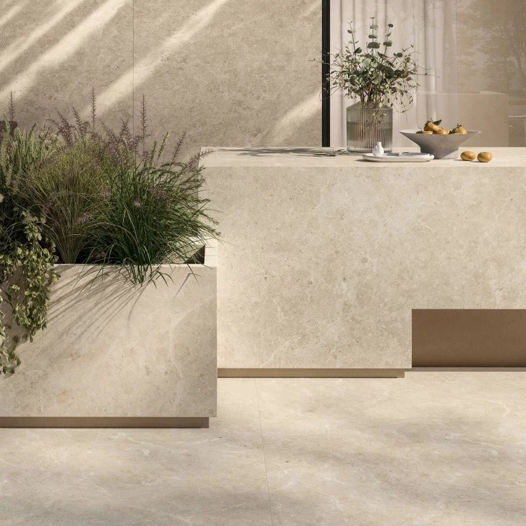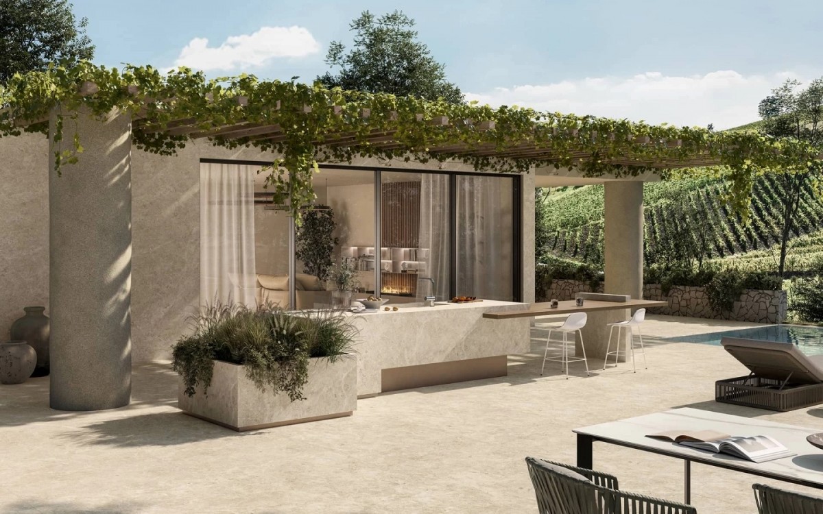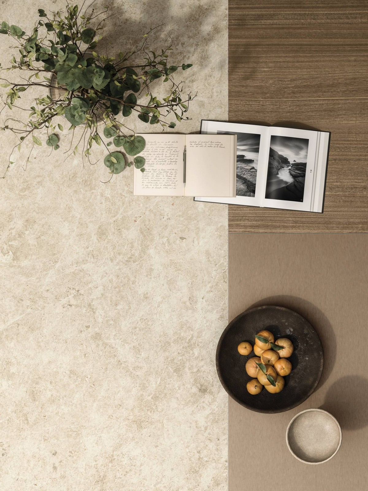 Nyra Hay elegantly represents a light and delicate material, with a warm white background, discreetly revealing the material's authenticity and transforming any environment into a welcoming space.