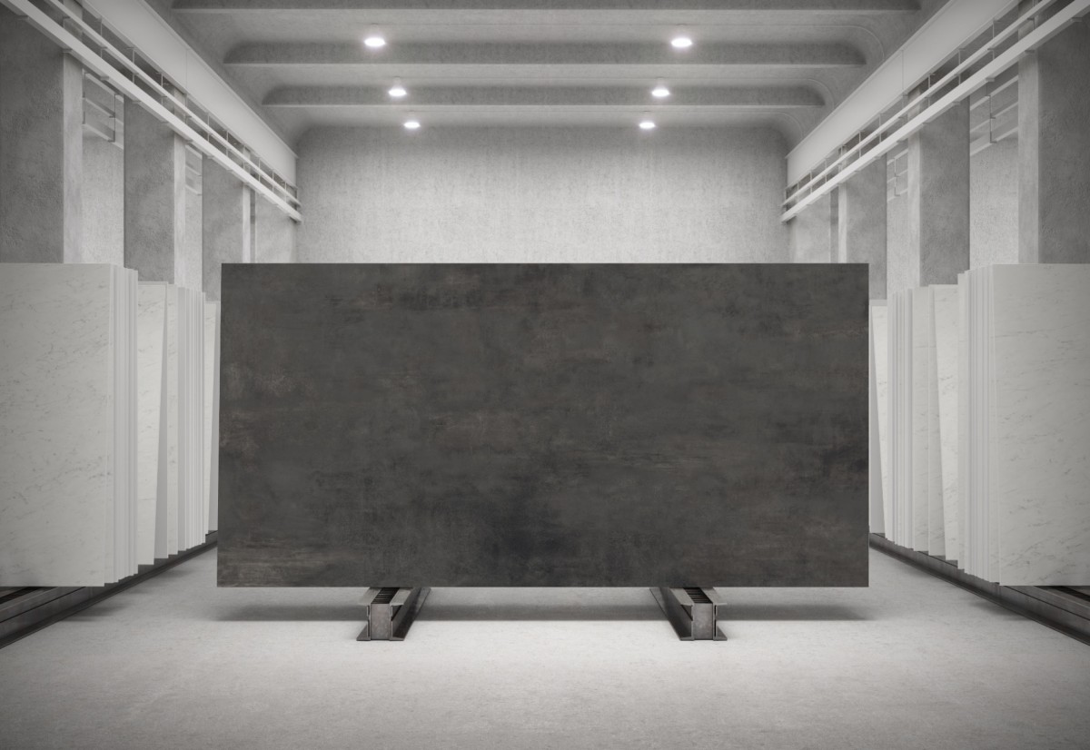 Um efeito cimento em tons cinza escuro e antracite. Boost Tarmac é particularmente adequado para espaços que projetam um ambiente contemporâneo e minimalista.