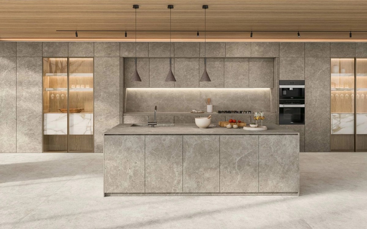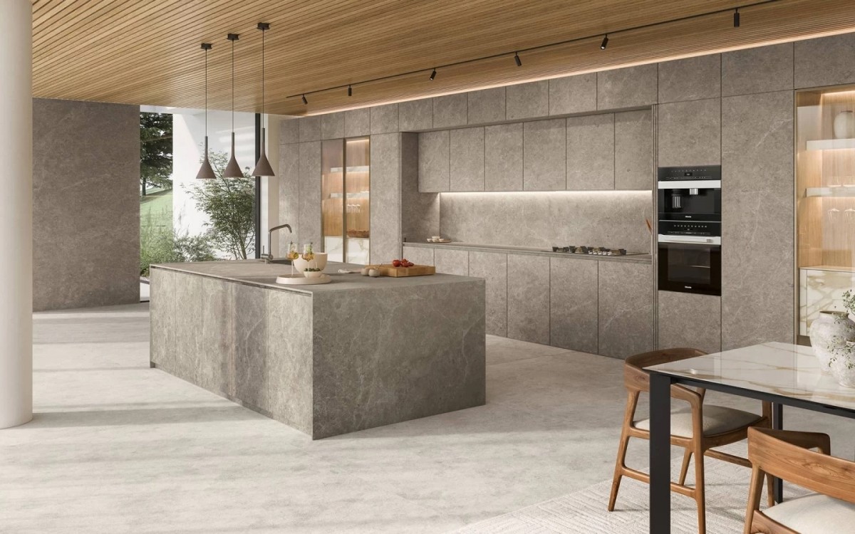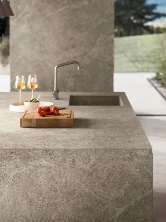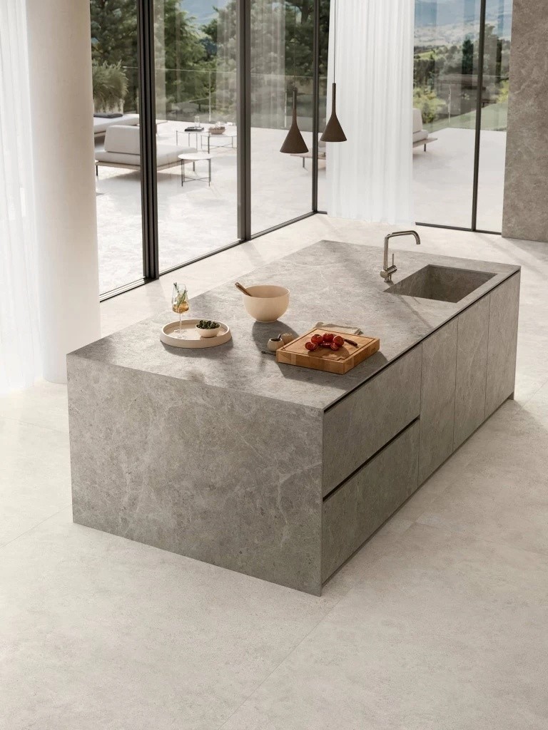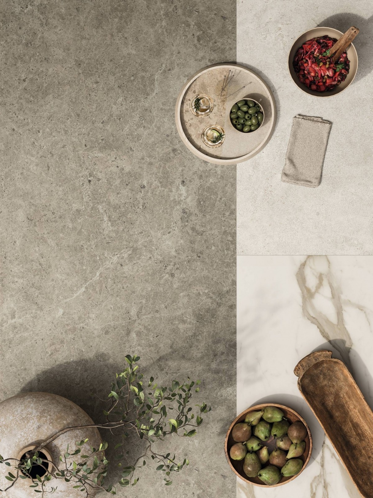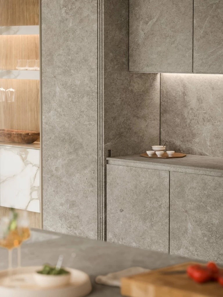 Nyra Mist é caracterizada por um fundo cinza claro com veios brancos suaves e delicados. A sua superfície transmite uma sensação de equilíbrio, com um estilo moderno e refinado.