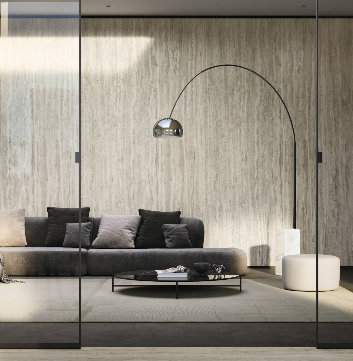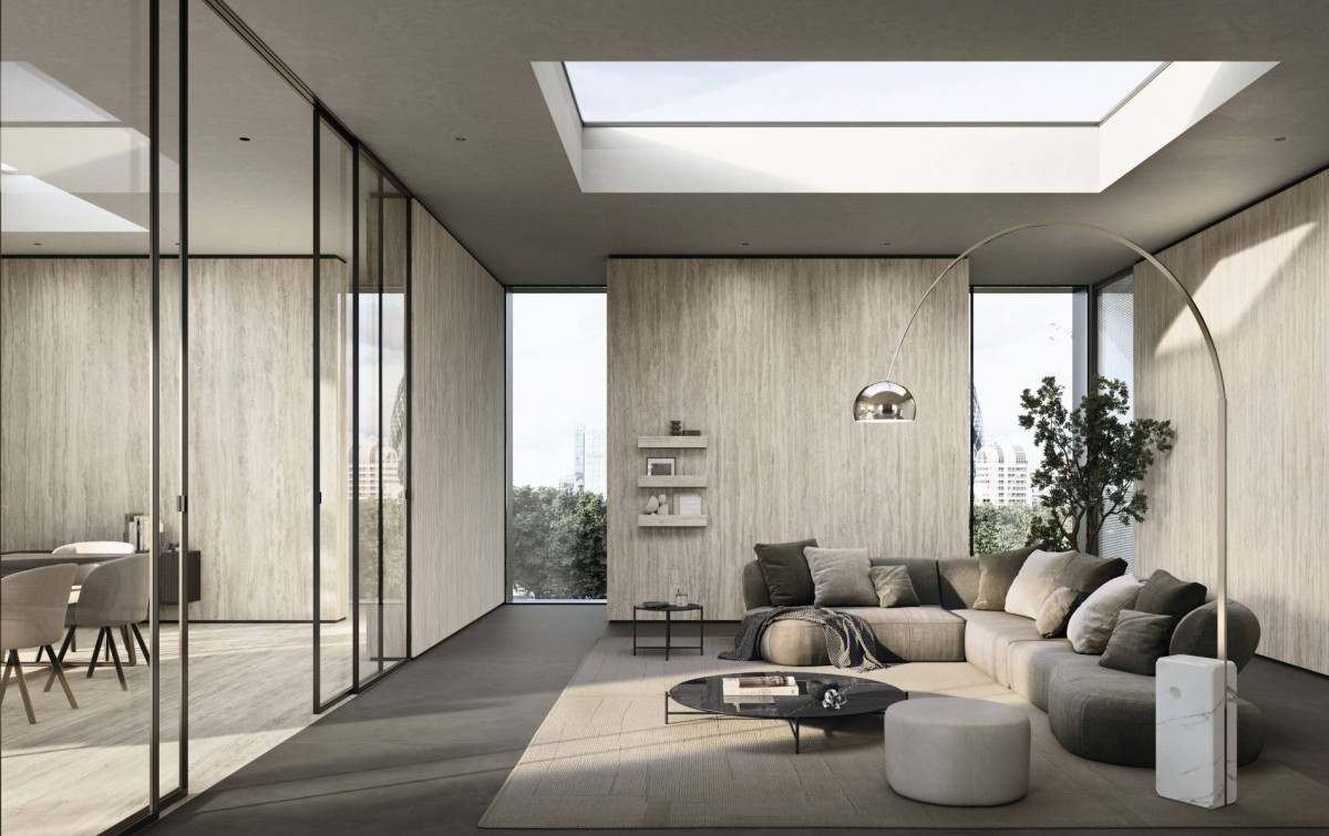 Travertino Romano Silver é a versão mais contemporânea da pedra natural, com uma paleta de cinzas elegantes. Um material pensado para ambientes modernos e sofisticados.