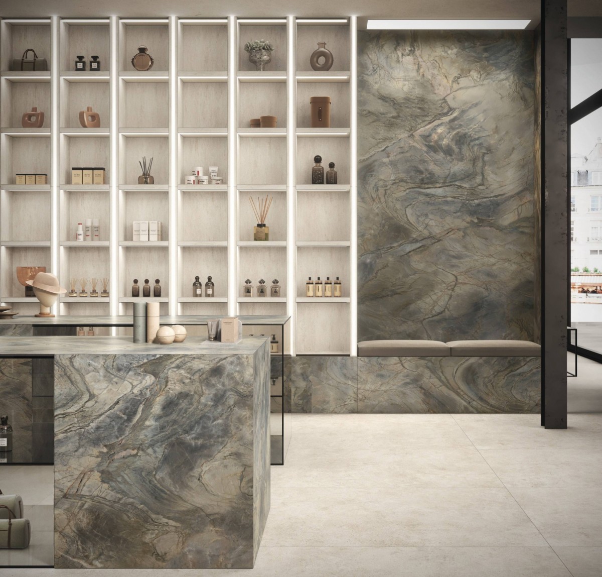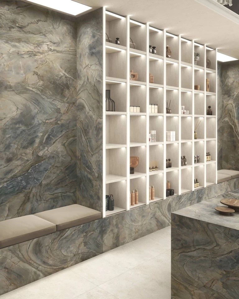 Zephyr é um material decorativo, inspirado numa pedra brasileira, caracteriza-se pelos seus veios marcantes e assemelham-se ao sopro do vento, tornando qualquer ambiente único e particular.